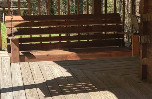 Cabin #4 is the newest of the original cabins at Williams Creek Retreat. It’s a two-bedroom, one bath cabin, all on one level, with two full-size beds, a fully-furnished kitchen, and access to the gazebo that is available for our guests’ use. Enjoy the sound of the stream out back from the swing on the wrap-around covered porch, or a picnic-style supper and campfire from the fire pit and table outside.