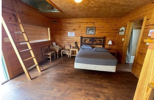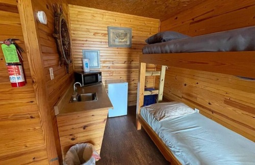 Cabin 52 at Tranquility Bay Resort includes: 1 Queen bed, set of bunk beds, small refrigerator, microwave and coffee pot. Twin bed in loft. Sleeps 5.