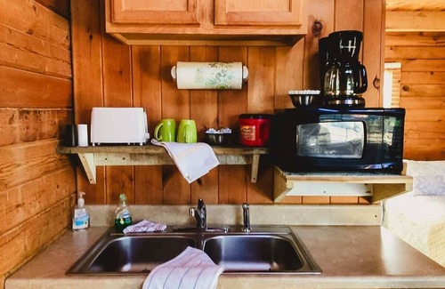 Relax and unwind in this charming private log cabin, perfect for up to 4 guests. Full kitchen and bathroom. All linens and essentials provided.