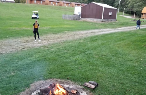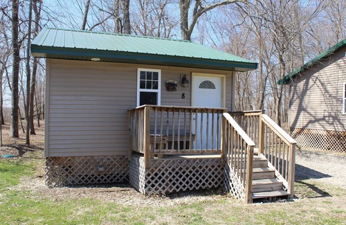 Cabin #8 of tastefully decorated family cabins available will sleep up to 6 guests. Small deck with benches for sitting out on starry nights. The Cedar River is a short pleasant walk from the cabin. A rural area with many wildlife, but close to many attractions, including but not limited to the Mississippi town of Muscatine, Iowa. Many activities at the camp, with acres of timber and trails that run along the Cedar River. Plus horseshoes, basketball, sand volleyball, regular volleyball, tether ball, playground,