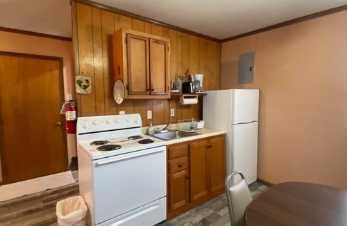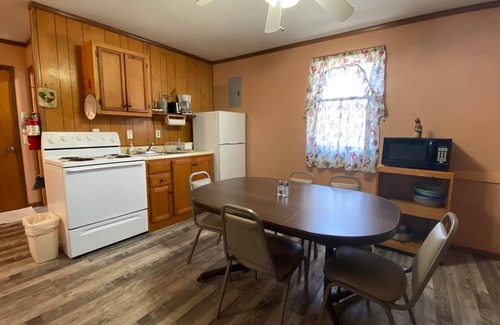 Cabin 9 (duplex cabin with connecting door) - single room units, two full-size beds and hide-a-bed, bath with tub and shower, full kitchen.