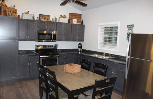 This cabin is located in a beautiful wooded area. It is nestled between St Patrick and Lake of the Oaks, MO. We are about 6 miles from interstate MO 27 / US 61. Accommodations not only include the cabin with a covered porch that over looks a newly stocked pond, but it is often visited by deer in the morning and evenings. You can sit back and listen to the birds chirping in the early morning or the frogs croaking as you sit around a roaring campfire in the evening. The 2 bedrooms have king beds that can be split into 2 twins. The living room is furnished with 2 recliners, a full couch and DISH Network! The kitchen is equipped with a full refrigerator, stove, microwave and a table for 6 for plenty of seating. If you enjoy the outdoors and nature, this is a cabin for you! We are located near many public hunting and fishing grounds. Pack-n-play, high chair and booster seats or available upon request.