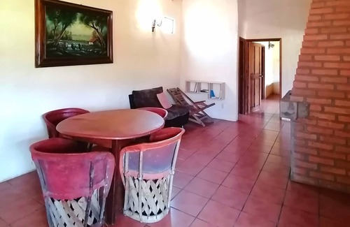 Cabin with details such as beamed ceilings, wooden windows and an equipal dining room. It has an outdoor terrace where you can grill on charcoal from where you can enyoy fresh air and admire the nature in quiet privacy.
