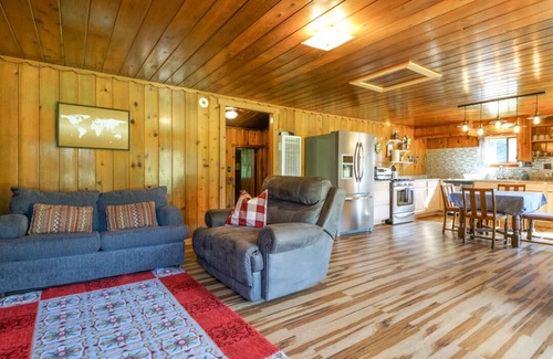 The cabin has a great front porch to relax and enjoy your favorite beverage or enjoy the firepit or hot tub in the evening under the big starry sky. The pond is stocked with trout and there is a creek on the property too.