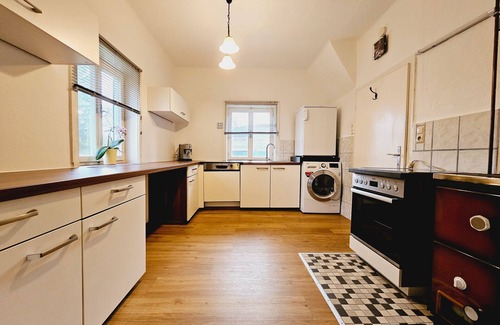 - Equipped kitchen incl. fridge with freezer compartment, dishwasher, electric stove, oven, coffee machine, crockery, washer-dryer, etc.