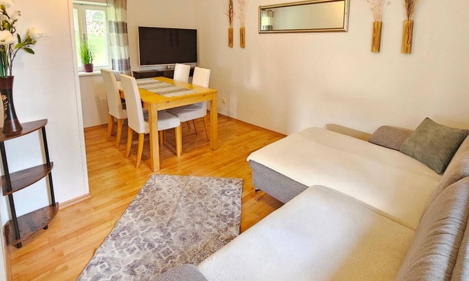- Living room with HD TV, dining area and comfortable sofa (1 sleeping place)