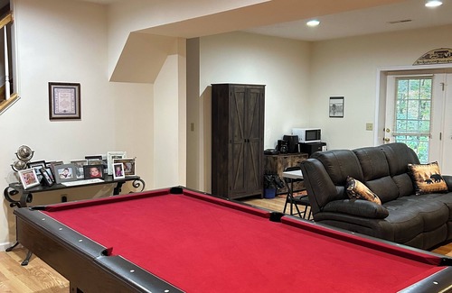 Quiet setting surrounded by 2 1/2 acres of peace and quiet away from the city noise in the center of huge oak trees . Wild life comes right to the back porch . Deer , squirrels , birds , woodpeckers and hummingbirds .Its a basement apartment with 2beds 1bath with washer/dryer . A fire pit and picnic table with grill for you to enjoy with your stay . Close to capon state park where there’s a lodge , playground , hiking trails and a beach with a nice lake to swim in .