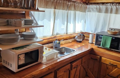 Outside, the cabin has a deck by the river, barbecue, garden table and chairs, where you can spend incredible moments.