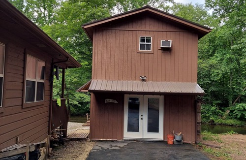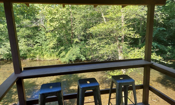 This studio cabin has a beautiful view overlooking the water, beautiful mountains, has a game room, quite and cozy. With firepit , grill and hammock on Creekside, walk out the door and go tubing ( tubes provided). Located a short drive from all the wonderful restaurants and attractions of Galinburg and Pigeon Forge. Suitable for couples only.