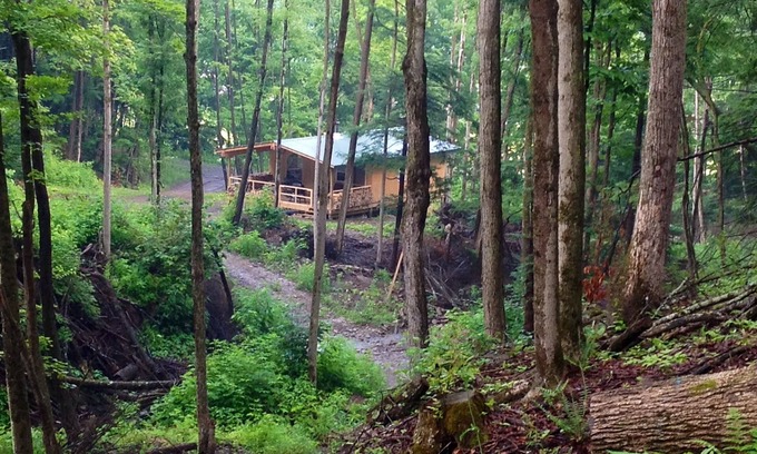 Our Off-Grid cabin is just 15 min. from Letchworth State Park. Cabin Creek Getaway features a secluded, rustic cabin right next to a cascading stream with beautiful waterfalls! With 100 acres of private forest, trails, and abundant wildlife, you can get away from it all, and be alone with just the people you enjoy spending time with! Even though there is no electricity at our cabins, we have provided all the comforts of home (no TV, sorry) including an LP gas refrigerator and heater, solar lighting, on-demand heating for hot water, and a composting toilet in the bathroom.
