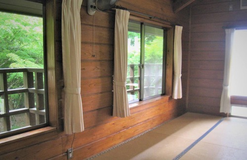There are lodges scattered amongst the quiet grove including 25 lodges cottages for 47 people one for 40 people one for 32 people a campfire area a barbecue house etc 14 tent sites / It is a cabin with a large bedroom of 9 tatami mats on the 2nd floor and a living room and dining room on the 1st floor