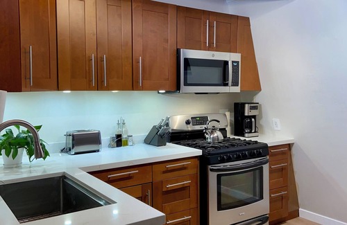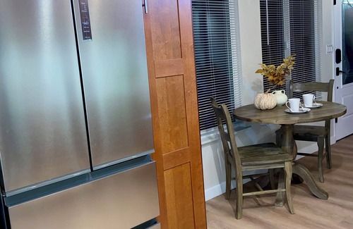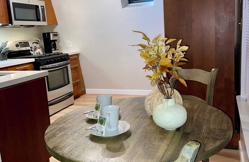 The Teahouse's trees, space, and privacy provide a much-needed rest from our everyday lives. Two bedrooms and a sofa bed accommodate up to 8 guests in this uniquely quiet neighborhood. In addition to free WIFI, we have added a desk for working vacations. You'll enjoy the ease of finding restaurants, trails, sightseeing, and more. Only a few minutes away from the lake, Big Bear offers skiing and other outdoor activities, as well as shopping, dining, and bar hopping. Whether out in The Village, or cozying up indoors, the Teahouse is sure to offer the getaway you're looking for.