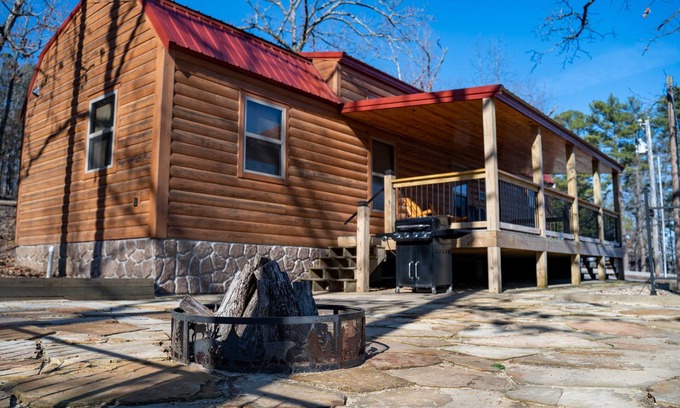 Nestled into the hillside with a lake view, Cabin 8 is a great place to relax and recharge. This cabin features a vaulted ceiling, a large porch area, and a huge patio with a fire pit. The gas grill will have you serving up dinner in no time. Built-in 2019, Cabin 8 has two bedrooms, two bathrooms, and a low ceiling loft. Each bed is a queen and it can sleep 6 people maximum. Although the lake is the main attraction, Cabin 8 also has high-speed internet and Dish Network. All linens are included, but you'll need to bring your own lake towels. Jordan Marina is your gateway to Sand Island and the Big Creek area of Norfork Lake. Take a boat ride to check out the dam or sandy beaches, or hire a guide to take you fishing.