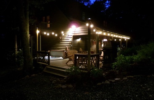 Welcome to Tranquility!Tranquilty is an upscale get-a-way for the entire family. This cabin is perched on a rolling mountain side offering over 3 acres of wooded seclusion, mountain trails down to a tranquil stream and long range winter views. The upscale Country Living decor throughout gives a feeling that hints "relax-you're on vacation in the mountains". This spacious home gives privacy to all.