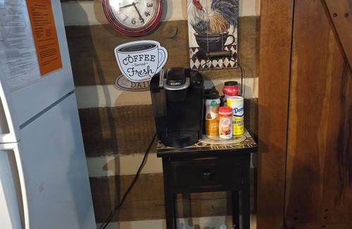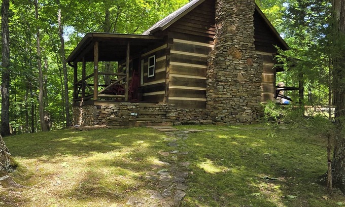 Our cabin is a very primitive style tiny cabin with modern amenities. It is a small 2 story with living area and full kitchen downstairs and bed/bath loft area upstairs. It has 1 full size bed and will accommodate 2 people. The upstairs loft is an open area with the bed on one end and full bath on the other end, with low ceilings. The bed is an antique high-side bed. You will need to be able to climb stairs to the bed/bath loft area. It has both front and back porches to enjoy the privacy and quiet time in the woods. It has a fire pit in the back which uses wood (we provide the cut wood) and a place to cook over the fire. We also have a grill if you prefer to cook on a grill.