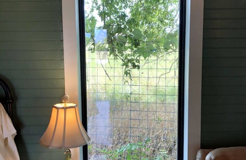 This cozy cabin, a sister property to The Albert, sits on the same acre but offers a different vibe with a separate entrance. Once a hunting shack, it’s now a reimagined tiny home for couples to unplug and reconnect. With a comfy California King bed, dual shower heads, and a large deck overlooking a hay farm, it’s perfect for relaxation. The artsy kitchenette and outdoor grill make it easy to prepare a romantic meal, while its location offers easy access to Hill Country attractions.