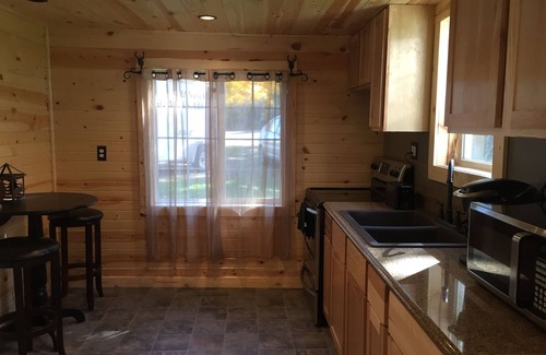This is a one bedroom home, so we have made the most of the space by offering 2 bunk beds in the bedroom, a futon couch in living room, a couple full couches, and the option for blow up mattresses in the bedroom and living room if you choose that over the other options.. The bathroom is fully cedar and smells wonderful. The rest of the house is finished in pine. There is a full kitchen, large yard, and firepit area. With option to rent kayaks and canoes upon request ahead of time for the lake just down the road. Security camera located outside above kitchen window for your safety. Pets are allowed with a pet deposit. We can provide a portable kennel for your use. All pets are to be kept in kennels and not allowed on furniture, beds or any linens. If your pet is not housebroken please have it in the kennel and outside. Thank you for being considerate. We appreciate your business.