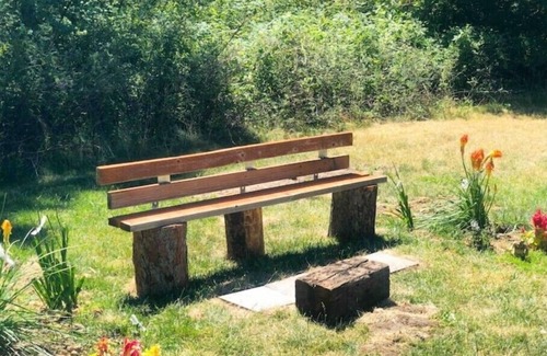 The cabin is surrounded by a fire pit, picnic area. The large yard offers a space for fun outdoor activities.
