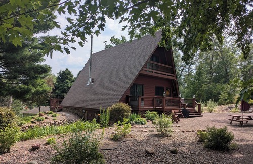 Enjoy this cabin-like A-Frame in the city! Although located near many businesses and conveniences, this property sits on 1.5 wooded acres in a private setting, you won't feel like you're in town! (Before we go on, you are strongly encouraged to buy Travel Insurance, as you never know what can come up. This is direct from the VRBO website: Visit www.vacationprotection.com to buy a travel insurance plan. All of our plans include 24/7 Travel Support while traveling. Also please note 4th "bedroom" is the lower level family room with the futon.)
