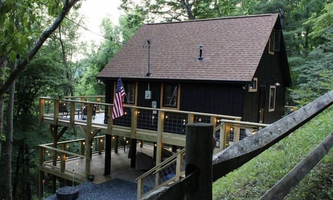 Cabin in the Blue Ridge Mountains, nestled in the tree tops overlooking a creek | Cabin in Jefferson