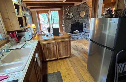 Due to the high deck levels and the occasional visits from our furry forest neighbors (deer, elk, fox, coyote, bear) Cabin in the Pike is not appropriate for young guests. We have a strict age limit of 14 or older. Please inquire if you have any questions.