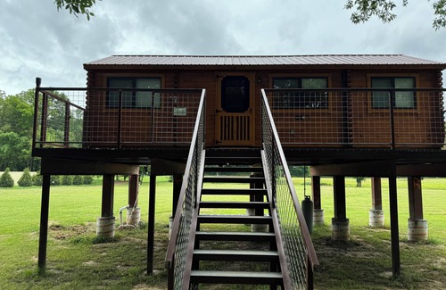 Welcome to the Cabin in the Trees, a serene retreat perched above a clear Ozark stream. As you arrive, the rustling leaves and crisp forest air will greet you, setting the tone for a tranquil getaway. Your cozy haven offers a perfect blend of rustic charm and modern comfort, with a spacious living area, with a beautiful and comfy futon that turns into a cozy queen bed . A well-equipped kitchen, with rustic cabin decor.