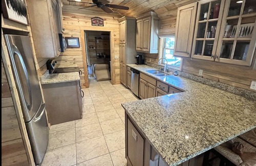 Beautiful rustic cabin on 4 acres in the woods with all the modern amenities needed to enjoy your stay. Just 2 miles directly off interstate 20/59 and 20 miles south of downtown Tuscaloosa and Bryant Denny stadium. Spacious den with wood burning fireplace are included w 3 bedrooms 2 full bathrooms downstairs and a loft w 4 single beds upstairs. No neighbors nearby.