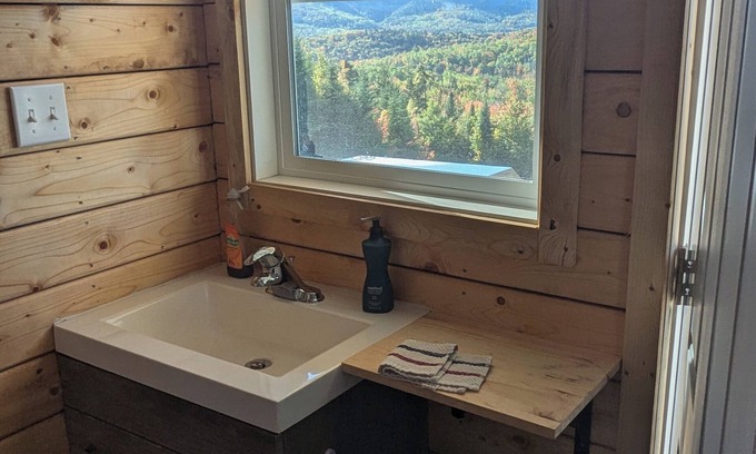 Welcome to the country,Enjoy a few nights living in your own paradise.Completely off grid this cabin is tucked away in the woods, Walking trails on site beautiful view of Caledonia mountain. We offer A queen bed a propane two burner stove for cooking inside. A barbeque outside as well as a patio and fire pit.Included for our guests are as follows(propane,wood for fire inside and out,dishes and utensils pot and pan, playing cards.towel face clothes,running gravity fed inside water and flushable toilet.a queen bed with bedding, and a cooler to keep your food in)
