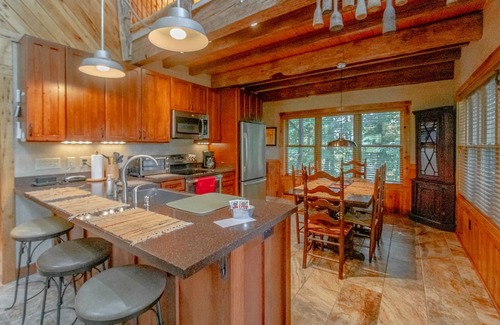 Breathe Easy is accessed by a steep paved driveway. It is plowed in the wintertime. As with all our homes, 4WD and tire chains are necessary for Winter access to this property. In Summer, the home is accessible with 2WD, but guests should be prepared for a steep climb.