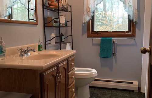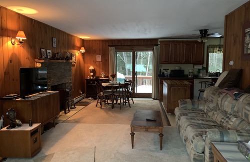 Private cozy cabin on 2 acres of land in North Newport on a dead-end dirt road. It is perfect for four quest. Enjoy listening to the birds and wild turkeys crossing in the field, prancing deer, brooks flowing into the Sugar River, 9 mile rail trail crossing covered bridges using a ATV, bike, hike, snowmobile, cross country ski, snowshoeing and dogsledding. Watch for the wildlife as it is abundant. Downtown Newport is a five minute drive and Mtn Sunapee and lake, beach with playground, and boat ramp, is a 12 minute drive. Along the way to the Mtn is a Sanctuary Farm, live animals, outdoor activities for children, and the ice cream stand.
