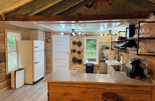 100 yr old cabin has just been remodeled with central heating and air, Starlink for WIFI, heated toilet and heated towels, Sonos for sound, it sits on 100 acers and you only have one neighbor just down the hill. Two water falls run 20' from the porch that are visible in the winter. Tempur Pedic mattress's in both bedrooms. Smart TV and with Netfix. There are wild horses at the top of the property. Local guide is availably. Relax and enjoy the sounds of nature.