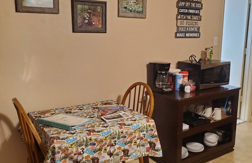 Here at the Hideaway you have your own private porch with outdoor table and chairs. Plus 2 recliner chairs. Your private entrance has a security digital lock that you get the code sent to you the morning of your arrival. There is an outside grilling area that is available for cooking your meals. Along with the smoker/charcoal grill there is a 2 burner Coleman propane stove for cooking too. Inside there is a microwave and toaster. For entertainment there is a 32" TV (only local channels available) and DVD player with a small assortment of DVD's to watch. Several of the movies were made right here at Caddo Lake. The bathroom is rather large and spacious and there are plenty of extra towels in the bathroom cabinet. Even though it is attached to the main structure it is totally secluded with its own private porch and entrance and you will have no contact with anyone if that's your preference. Everything here at the Hideaway is all yours and nobody else is around, just total privacy for you and yours! But we are nearby and available anytime if needed. The cabin is great for 2 adults but can accommodate a max of 3 persons. We recommend a minimum age of 13 for all cabin guests. For more info on all we have to offer can be found on our website. Please, visit caddolakehideaway.com for complete detailed information on our facility. There you will find many more photos as well as some videos. Most all questions can be answered by visiting our site. If after you read over all we have to offer and you still have any unanswered questions please contact us and we will be more than happy to assist you. Thank you, and we look forward to hosting you.