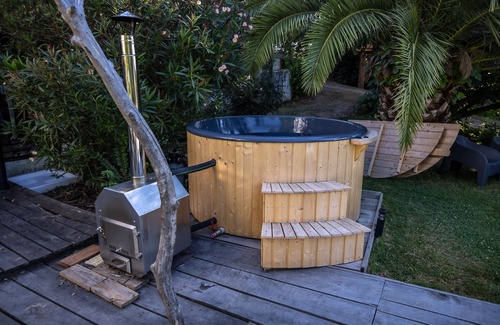 The green setting of the Irriberria house was perfect for the construction of huts. This has been done since 2022! These unusual and playful accommodations, combining Robinson Crusoe spirit and great comfort, seduce adults as well as children, and guarantee them an immediate change of scenery. The cabin is suitable for 4 people with stunning views of Mount URSUYA
