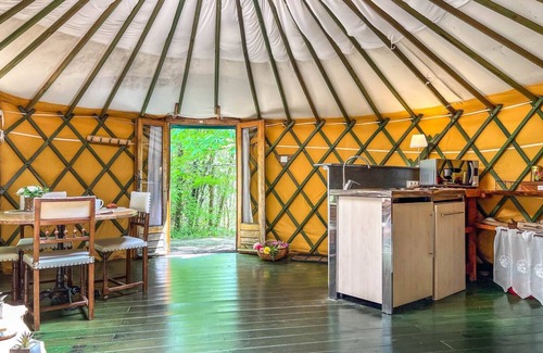 The Cabin Love Yourte avec hammam in Vitrac is the perfect accommodation for a stress-free holiday with your loved ones. The 45 m² property consists of a living room, a well-equipped kitchen, 2 bedrooms and 1 bathroom and can therefore accommodate 3 people. Additional amenities include air conditioning. A high chair is also available. This accommodation does not offer: Wi-Fi and towels. The Cabin features a private open terrace, perfect for evening relaxation.