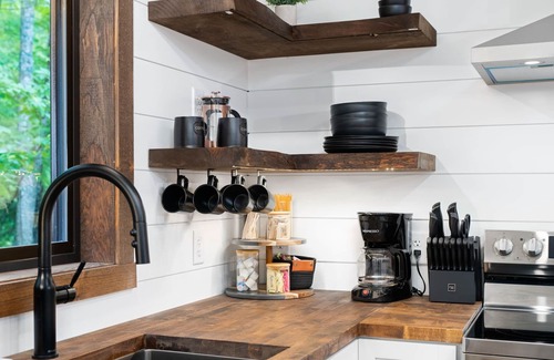 The second floor boasts three inviting bedrooms, each offering scenic forest views. These well-appointed bedrooms are equipped with top-quality linens, extra pillows, cozy blankets, ceiling fans, noise machines, and blackout curtains for your comfort.