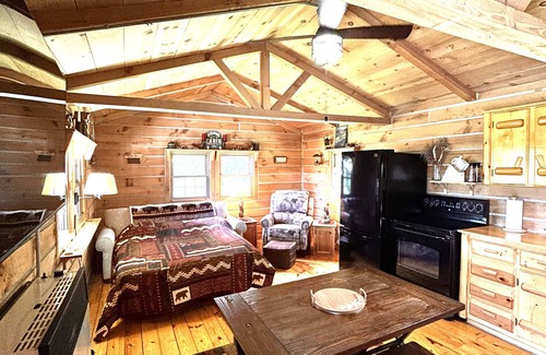 Long Lane Tiny Cabin offers a serene retreat for those seeking a break from everyday life. Nestled on 22 acres of picturesque countryside, this 588 square foot rural cabin provides a peaceful escape surrounded by nature.