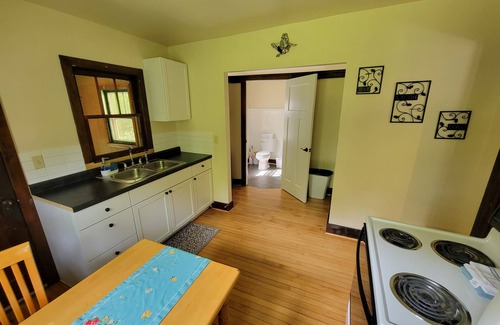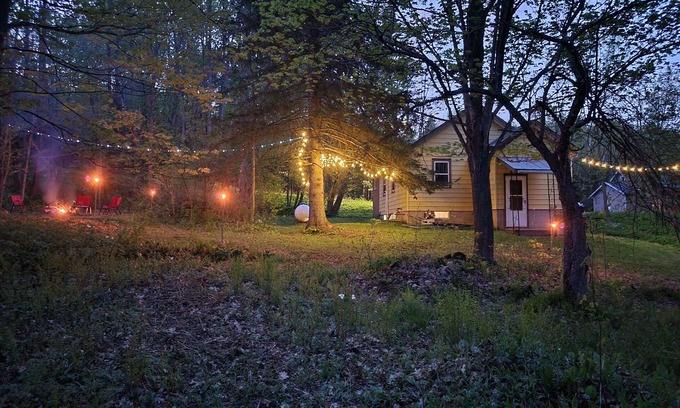 Steps away from the Cabin are trails and hills of the 25 acre mature forest. The Campfire area is light by torches and decorative lighting. Black River is a mere 1 mile hike through the forest. The new paved bicycle path a mile away down the bluff.