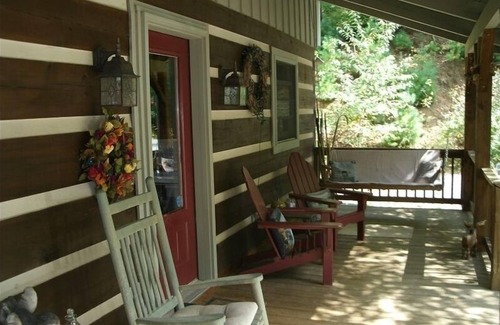 Keywords: Rustic log cabin with wood burning fireplace and campfire ring outside for the cool evenings. All rooms open and airy with 2 covered porches for relaxing. All modern conveniences w/washer-dryer. Convenient to Blue Ridge Parkway and short drive to Boone, Blowing Rock, West Jefferson and historic Todd. Enjoy gentle flow for rafting and tubing on the nearby New River.