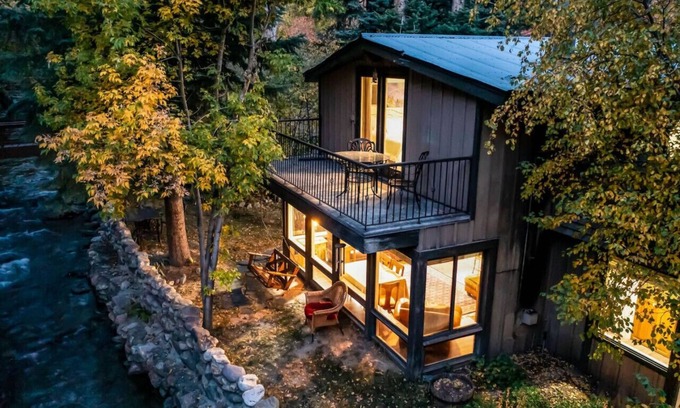 Cozy historic cottage, beautiful mountain views, right on the river. 2 bedrooms upstairs and an optional pullout couch in the living room. Old mining trails surround the neighborhood.