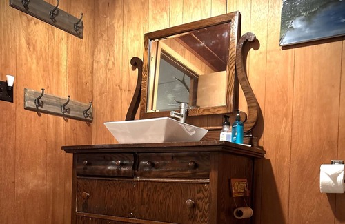 Simple 3 bedroom cabin built in the 60’s on two waterfront lots. Master bedroom features lake views and a Serta I Comfort mattress. Plenty of room for parking all your toys and for pitching up tents. A private trail leads to a small beach area for children to swim and play. Motorless lake allows for a nice quiet get away with superior fishing right off the dock. Rental includes a row boat to access the rest of the lake. Sleeps 8