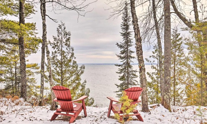 Both parking on-site and free Wifi are accessible at Cabin on Lake Superior about 11 Mi to Bayfield!. Offering a patio and lake views, the spacious apartment includes 2 bedrooms, a living room, TV, an equipped kitchen, and 2 bathrooms with a bath and a shower. Towels and bed linen are offered in the apartment. The property has an outdoor dining area. Gogebic-Iron County Airport is 56 miles from the property.