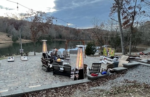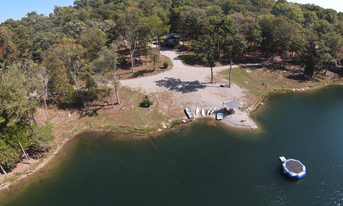 This fully furnished cabin features a spacious layout designed for relaxation and entertainment, making it ideal for both pre-wedding preparations and post-ceremony celebrations. The main cabin can accommodate up to eight guests comfortably, boasting a well-stocked kitchen, large dining table, and various entertainment options including three TVs and family games. For larger parties, consider adding the small cabin that contains two queen beds and two full beds. Additionally, enjoy outdoor amenities such as a private watershed lake complete with a water trampoline, swimming area, paddleboats, kayaks, and abundant fishing opportunities. With over 1,000 acres of trails, you can explore the stunning surroundings by hiking, biking, or horseback riding.