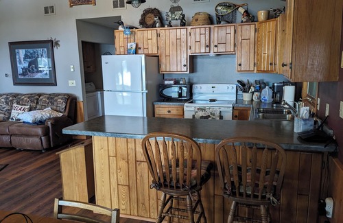 Our cozy cabin is located in the Northern part of Wisconsin in Phillips, on beautiful Soo Lake in Price County. Enjoy this 2-bedroom cabin, 1 bathroom, that sleeps 8 along with a bunkhouse that sleeps 6 comfortably. The open concept living area has direct views of the lake within 66' from water's edge. Enjoy fishing, kayaking, swimming, reading a book/ taking a nap in the hammock or relaxing around the firepit roasting marshmallows. Soo Lake Bar & Grill is located on the lake with excellent food and hospitality. A great golf course (Westwood) is just 8 miles away, including a club house with bar and grill. Further north you will find Copper Falls near Mellen, WI for awesome waterfalls, as well as Minocqua, WI is less than an hour northeast. During winter, we have pristine snowmobile trails, (leave right from the cabin) ice fishing, cross-country skiing, and snowshoe trails. Peace and quiet will bring you a wonderful relaxing stay at our little piece of paradise.