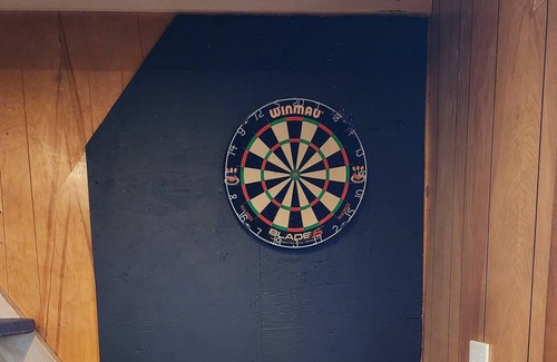 In the living room you will find a large sectional that will fit everyone. If you are ready to relax, the Roku smart TV and 5G Wifi will allow you to stream any of your shows or find a movie to watch. There are games, card games, and kids books for your enjoyment. Utilize the oversize coffee table, or the dining table has seating for 6. Or play a game of your darts with your friends.