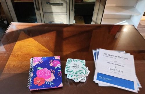 The fully stocked kitchen is ready for all your cooking needs. We have your basics; full size refrigerator, stove, and microwave. And the conveniences of a Keurig (no multi cup coffee maker), tea pot, spices, tableware, grilling utensils, and cookware. If you prefer to cook outside, we have you covered! On the back deck, right outside the dining room, is a full size grill and Blackstone griddle, you can feed an army with these.