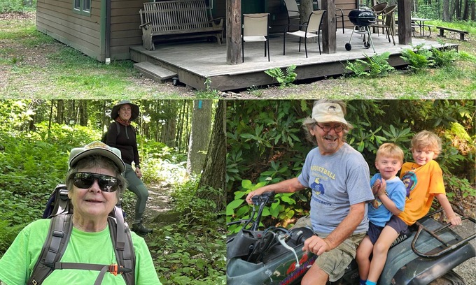 Upstairs two rooms with double beds are ready for your rest. Extra blankets for chilly nights are in the upstairs closet as well as a blow up mattress. If the blow up isn't there and needed, let us know. The main bath with slate stone shower is located off of the main bedroom. Although, this bathroom is shared by both bedrooms we trust you will find it pleasant and suits your purposes well. The sleeping accommodations are ideally suited for a two couples or adults and their children, it may accommodate up to six people considering the lower level pull out sofa.. The cabin is located in the woods and internet has not been available in past years though Hot Spot reception is good. This year we are planning for full internet service. We expect that beginning this summer, Summer of 2024, you will be able to use the internet for work or play.