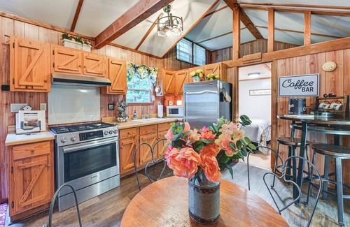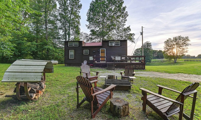 Ever wondered what farm life is like? Find out at this beautiful 1-bed, 1-bath cabin in Annville, KY. Situated on 155 acres at 'Maynards Triple M,' a working Highland cattle farm, this vacation rental offers the unique opportunity to experience interactive tours, see Scottish Highland cows up close, and indulge in fresh farm-to-table meals. After a day of exploring Red River Gorge, come home to take relax by the wood-burning fire pit, or admire scenic ridgeline views from the wraparound deck.