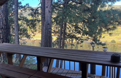 With WiFi, Satellite T.V heating, and AC, you'll have all the comforts you need. The cabin features a cozy bedroom, electric fireplace, kitchen and a well-appointed bathroom. Whether you're looking to relax indoors or explore the surrounding nature, this cabin provides the ideal base for your getaway. It's easy to see why you'll be able to unwind at our place. River access, free use of rafts and fishing boats. Patio with fireplace and Barbecues. and access to many trails, alpine lakes and scenic drives. Note: king bed, and 2 fold-out bed and couch for sleeping.