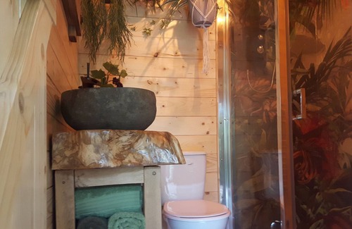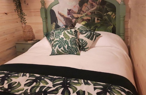 As a self-catering cabin, you'll find everything you need for a perfect stay.it doesn't need to be a boring experience whether it's a pit stop on route to a holiday or somewhere to stay whilst working away, this cabin will not leave you disapointed. As you enter the cabin through an established jungle garden you'd find it hard to believe you were just outside sutton coldfield and not in the tropics (except British weather of course).Graced with a handmade double bed, it's decor throughout, mirrors its tropical garden outside perfectly. A cosy open plan living area full of greenery and handmade wooden furniture shares the space with a generous, fully equipped kitchen which provides everything you'll need for your stay. The handmade furniture details extends to the beautifull bathroom where the vanity unit is made with local timber and adorned with a rustic stone hand basin and shower you could quite frankly lose yourself in. For a truly bespoke and unforgettable stay this cabin ticks all the boxes, it even has a BBQ and seating area on the patio outside.