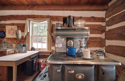 Nestled in the woods just 8 miles from State College, this rustic log cabin in Pennsylvania Furnace, PA, is perfect for you and your family to step back in time and relax together. This historic 1-bedroom, 1-bathroom retreat was taken apart, moved, and rebuilt by hand on a family farm overlooking the valley. Visit loved ones at Penn State University or explore nearby hiking trails! Later, you can enjoy the view from the front porch and unwind with board games by the electric fireplace.